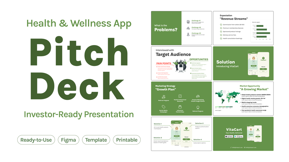 Health & Wellness App Pitch Deck Template | Company Profile | Figma